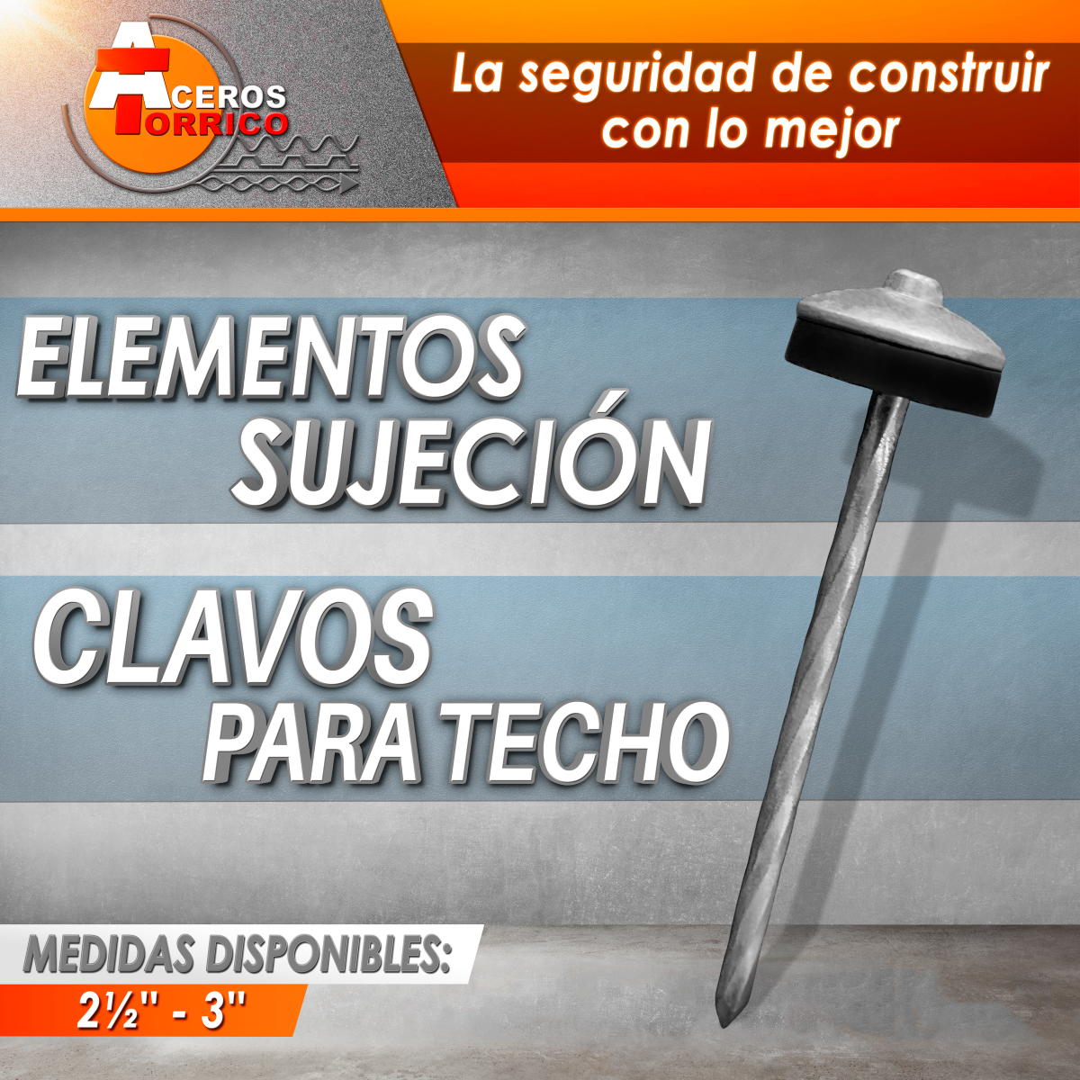 Los clavos para techo son un tipo de clavo utilizado específicamente para fijar calaminas en el techo de una estructura. Estos clavos se caracterizan por tener una cabeza más grande que el cuerpo del clavo, lo que les da una mayor superficie de contacto con la teja o chapa de metal y ayuda a mantenerla en su lugar.